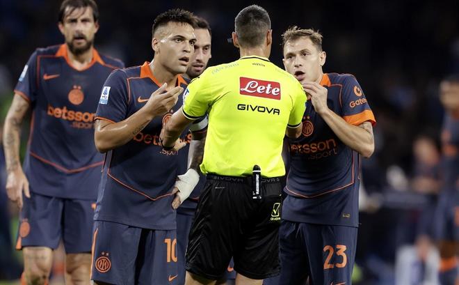 然而第33分钟,场上却出现争议一幕;迪洛伦佐禁区内前插接应,姆希塔良及时卡住身位,阿切尔比滑铲干扰成功碰到皮球,迪洛伦佐应声倒地,主裁判却判给了那不勒斯点球。纵使国米众将提出抗议,主裁判马里亚尼还是坚持原判,随后德布劳内操刀主罚命中,0:1!不过德布劳内在主罚过后拉伤了右大腿,无法坚持比赛被队医直接搀扶出场。