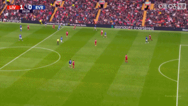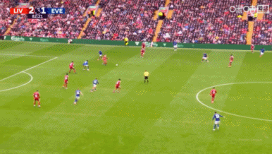 第10分钟,利物浦策动攻势,萨拉赫右路得球,45度挑传送入禁区,前插的赫拉芬贝赫不停球直接撩射射门,皮克福德无能为力,利物浦1-0埃弗顿。↓