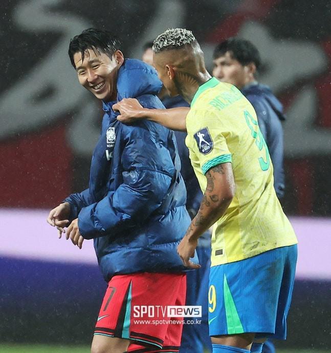 这场比赛,孙兴慜首发出场63分钟,而里沙利松则在第79分钟替补出场,赛后两位老队友在球场内相互拥抱并交谈,两人还在场内打闹。