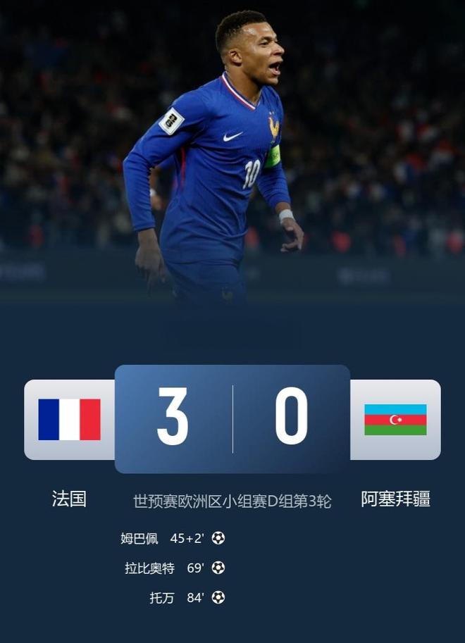 北京时间10月11日凌晨,在世预赛欧洲区小组赛D组第3轮的比赛中,法国主场3-0大胜阿塞拜疆。此役,利物浦新援埃基蒂克首发出战79分钟被换下,埃基蒂克面对欧洲弱旅阿塞拜疆都是碌碌无为,与全队显得格格不入,仿佛不是一个档次的存在,埃基蒂克如此状态今后很难捞到法国国家队首发机会了。