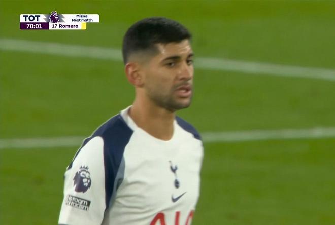 英超第12轮客场挑战阿森纳的北伦敦德比中,托特纳姆热刺队长克里斯蒂安-罗梅罗在第70分钟因为抗议判罚被主裁判迈克尔-奥利弗黄牌警告。