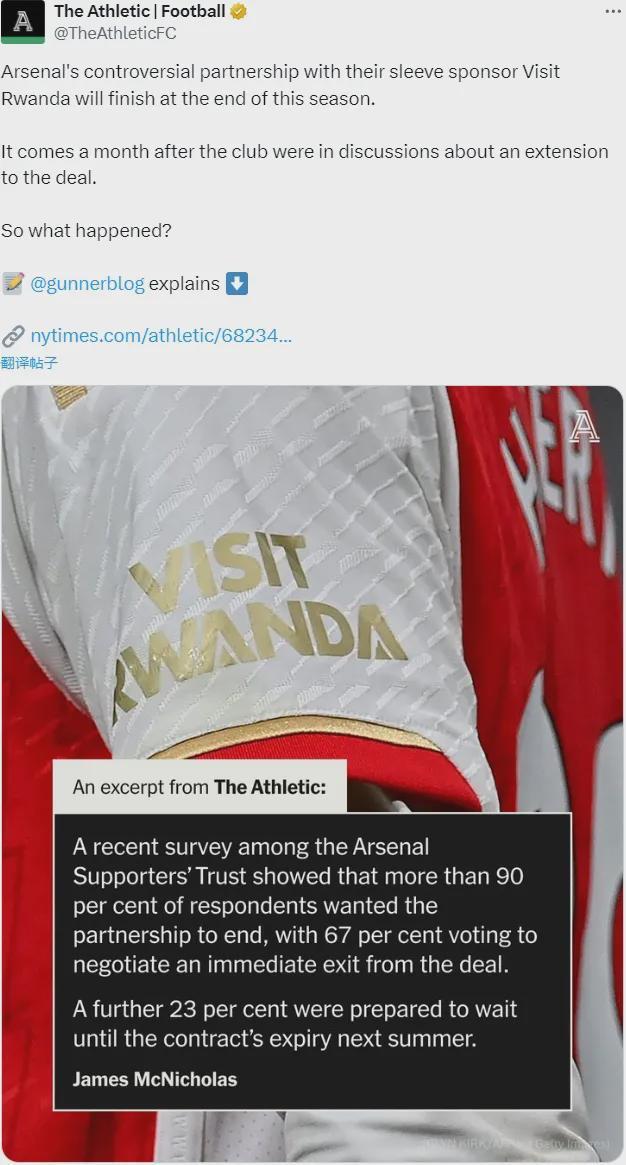说白了还是舆论环境问题,正如之前所说,卢旺达涉及一些地缘政治和战争,虽然这和阿森纳100%没有直接关系,但多一事不如少一事,万一屎盆子扣头上,真得不偿失。