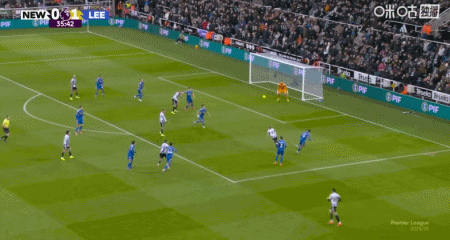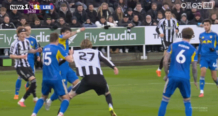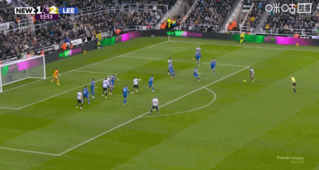 第54分钟,吉马良斯传中,乔林顿甩头攻门扳平比分,纽卡2-2利兹联