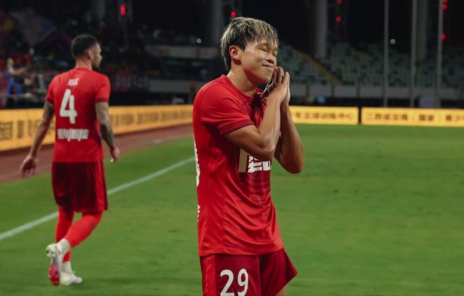 持续施压下梅州客家终于打破僵局。第44分钟,茹子楠右路接陈序煌横传后稍作调整,距球门25米处起脚远射,皮球击中金洋洋腿部发生折射,划出诡异弧线坠入网窝,梅州客家1比0领先青岛海牛!这记世界波既是茹子楠赛季首球,也打破了梅州客家连续18场无法零封的尴尬纪录。