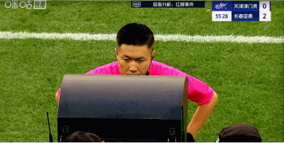 第58分钟,王禹踢中了哈达斯脚踝,VAR介入,裁判回看之后取消黄牌,改判红牌。亚泰少打一人!