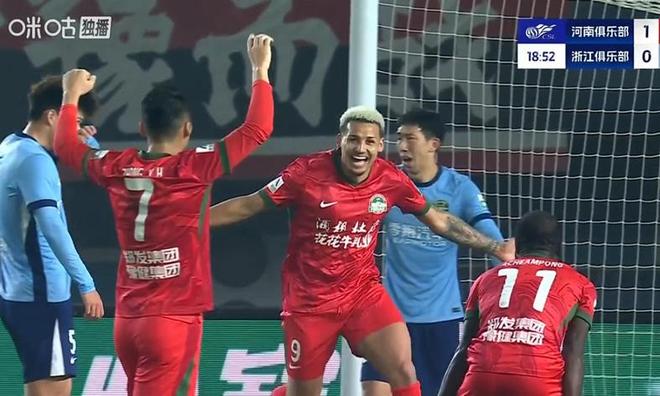 第18分钟,卡多索左路长途奔袭杀入禁区打门被扑,李提香不慎自摆乌龙,河南队1-0!