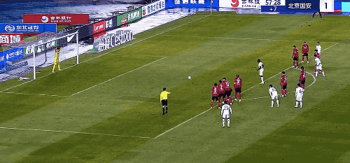 第19分钟,北京国安获得角球,塞尔基尼奥在无人盯防的情况下,头球破门。