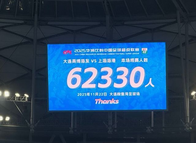 此外,随着大连英博最后一场来了62330人,这也直接打破了此前北京国安主场与上海申花的62291人的赛季最高纪录,成为本赛季中超最火爆的一场比赛。另外,这个数据也超越了今年苏超业余联赛的最高纪录,成为全年人数最多的一场比赛。