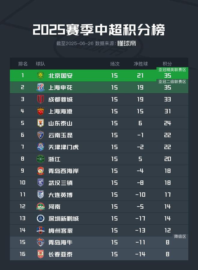 半程结束时,武汉三镇积18分排名联赛第10位,结果后半赛季他们只得到了7分,赛季结束的积分榜上,武汉三镇6胜7平17负积25分,排名联赛第13。