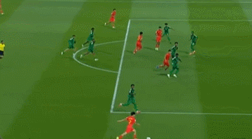 与沙特比赛中的这个进球也是一样的道理,脚下处理球很有自信,左脚停球后双足都能控球,最后是内切射门完成破门得分。